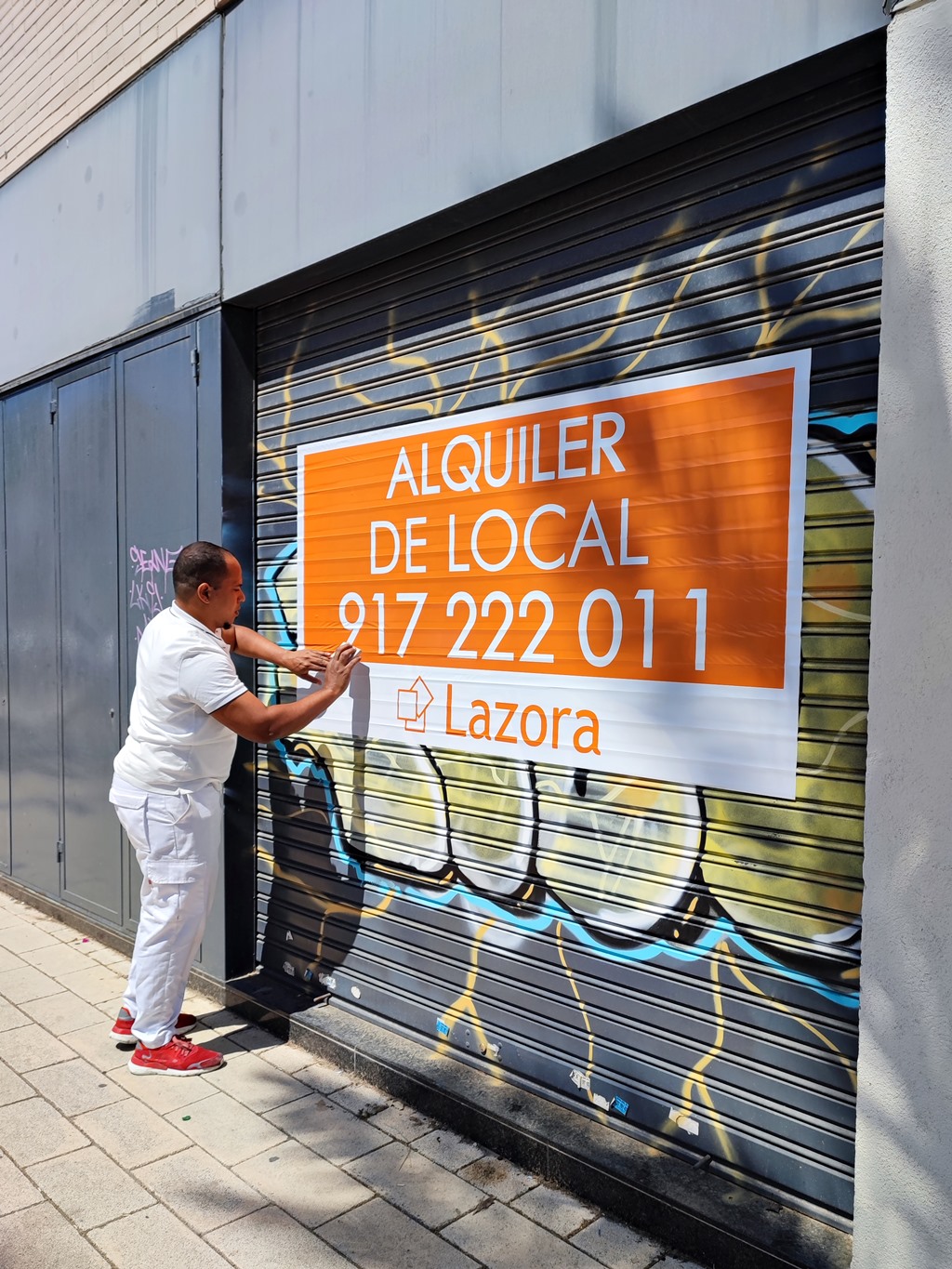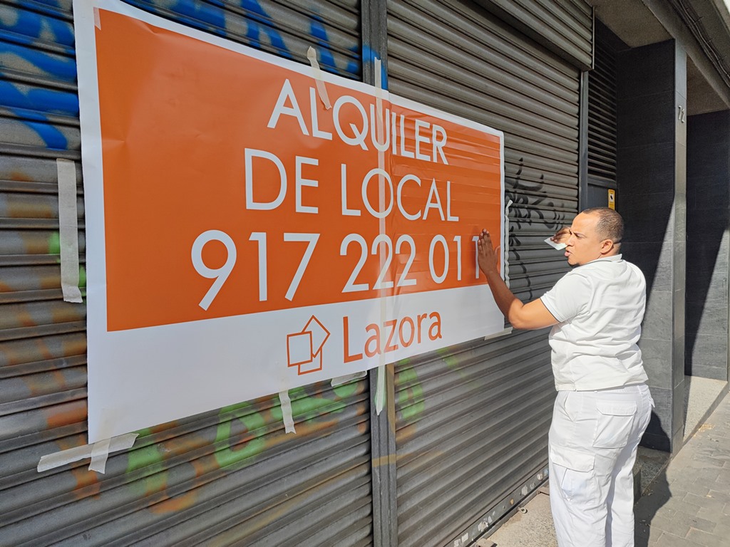 Inicialmente el trabajo consistía en la fabricación de los carteles de alquiler de Lazora, para ello nuestra empresa tiene todo tipo de maquinaras para realizar el trabajo con los mejores precios y con la mejor garantia de durabilidad en exterior, concretamente estos vinilos fueron impresos con un plotter Roland True Vis VS-640 y laminados en caliente con una laminadora para conseguir crear un producto de alta resistencia.