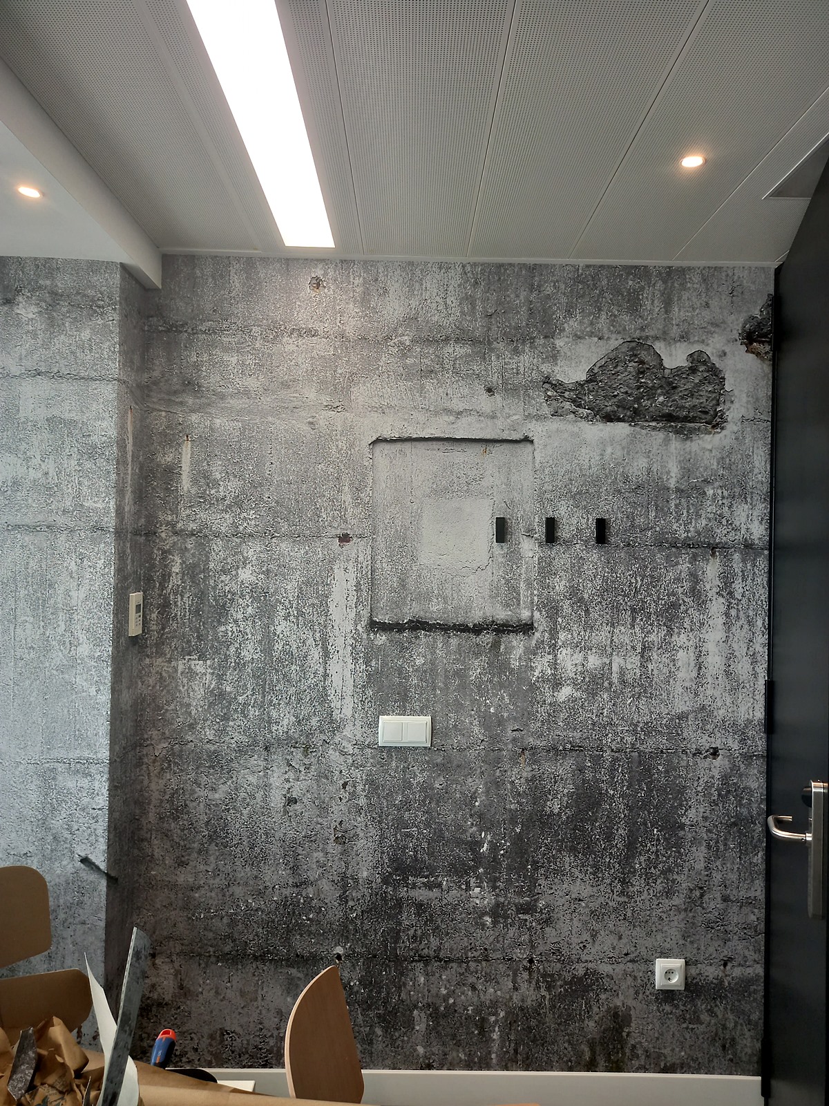 Instalación Murales Papel Pintado Hormigón en las Torres Mapfre Barcelona.