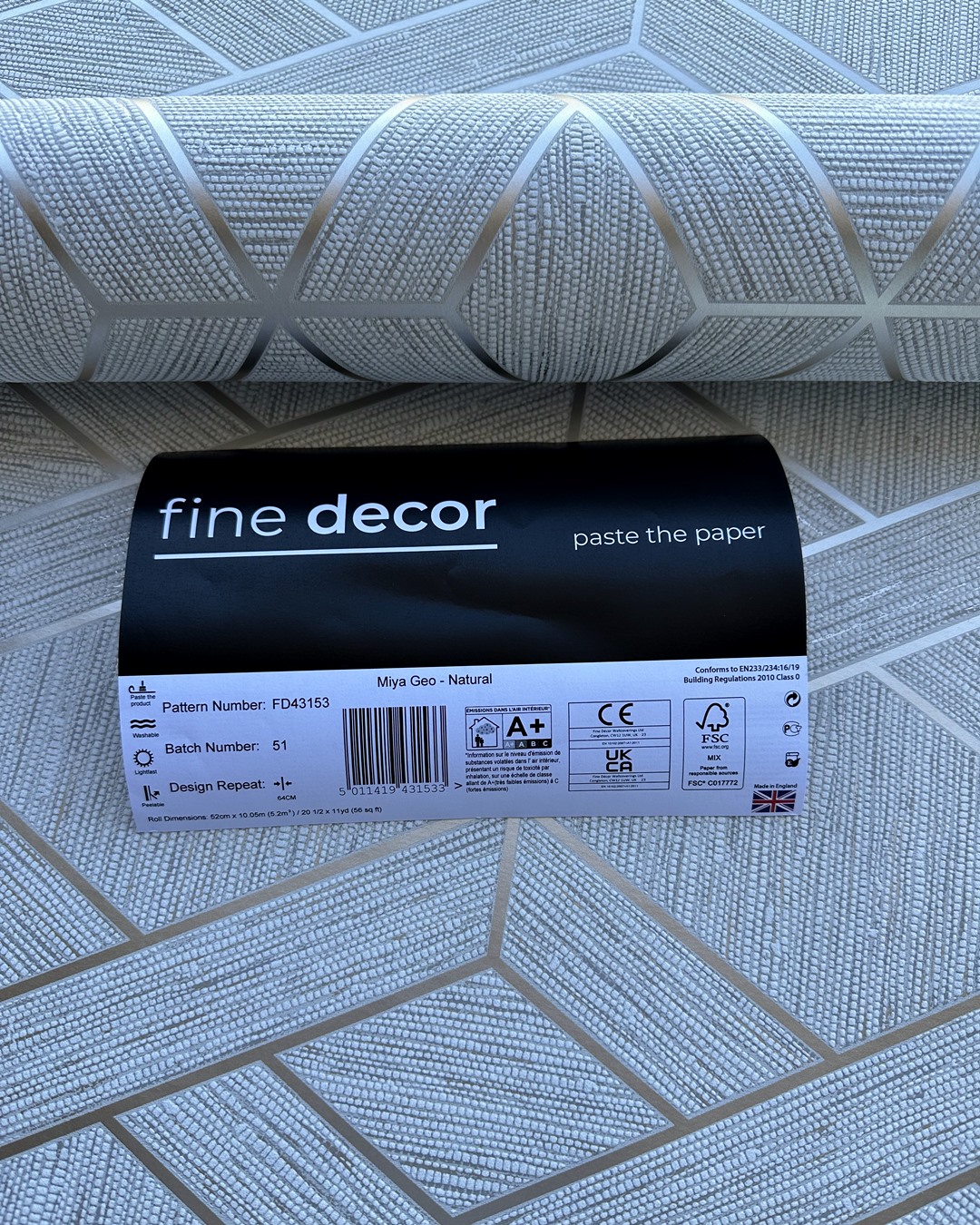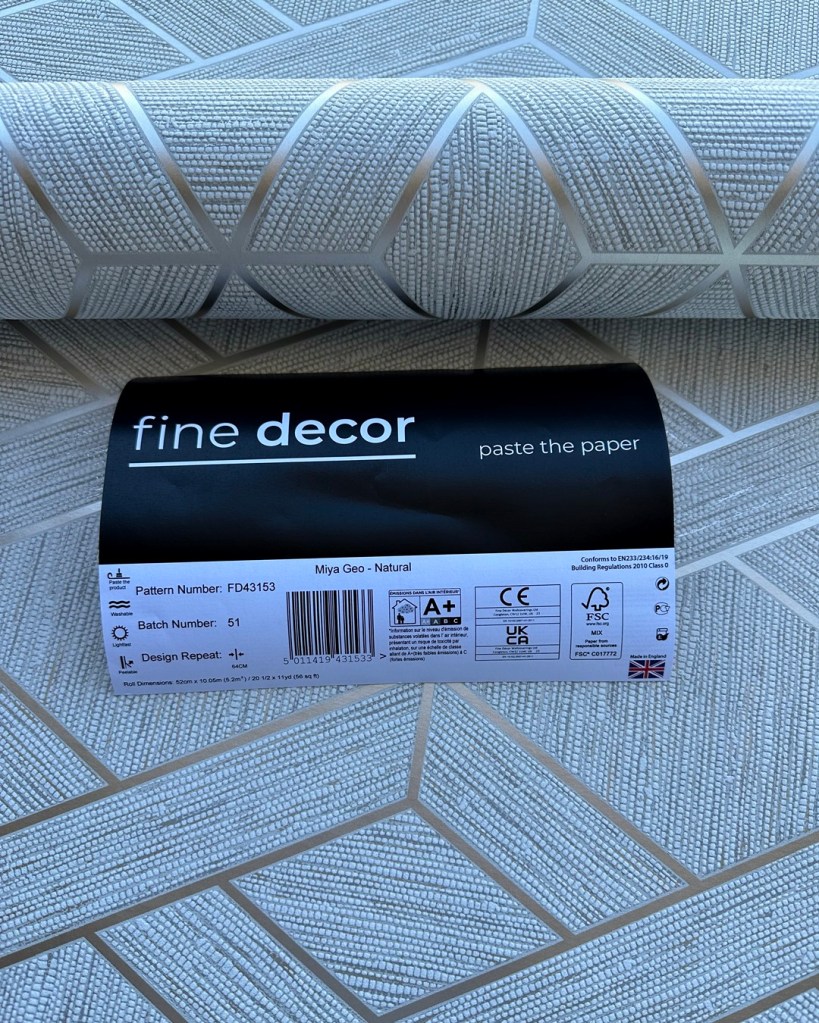 Producto: Papel Pintado Geometrico Miya Geo Natural FD43153 – Fine Decor