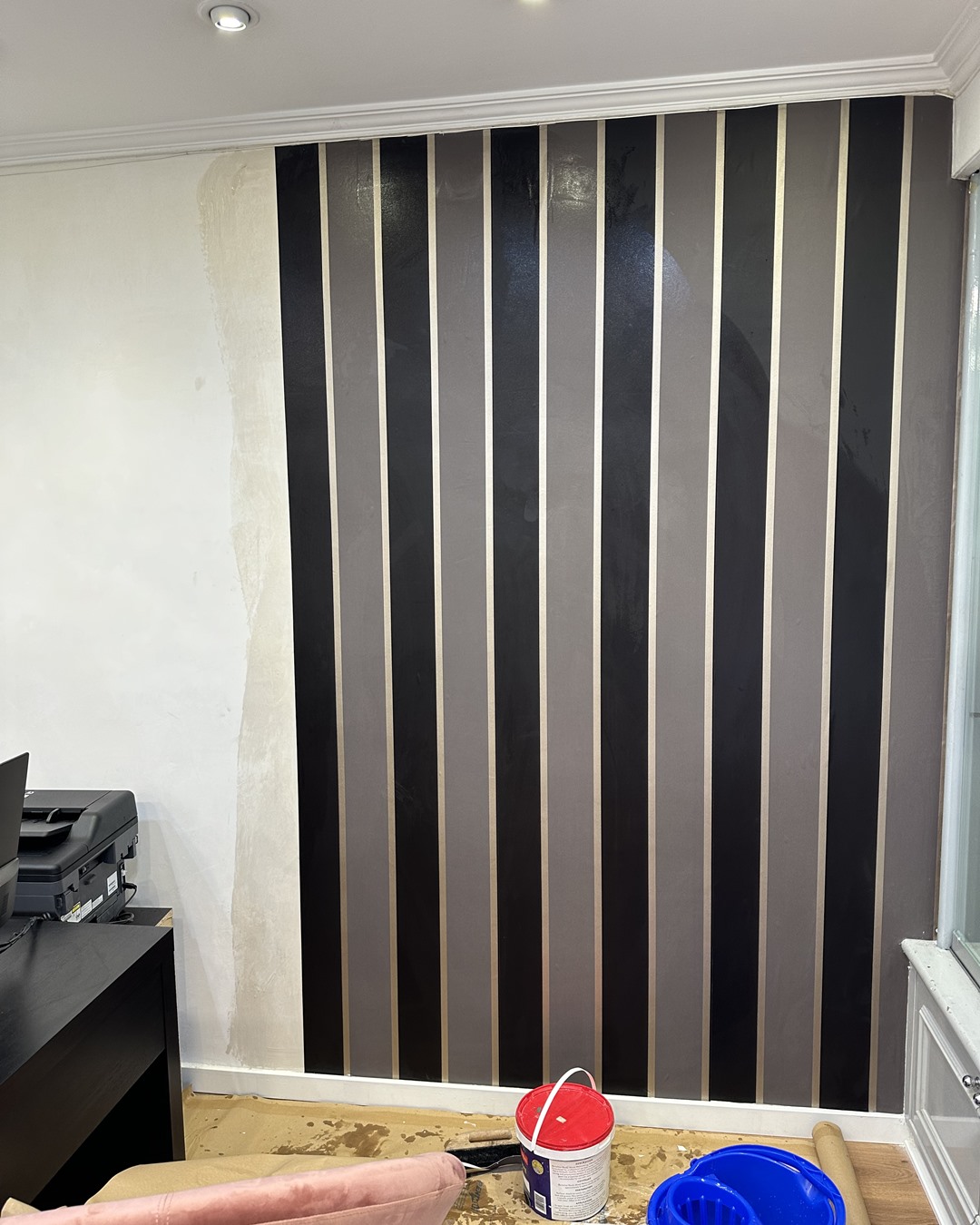 Empapelador Barcelona – Aplicación papel pintado rayas en oficinas