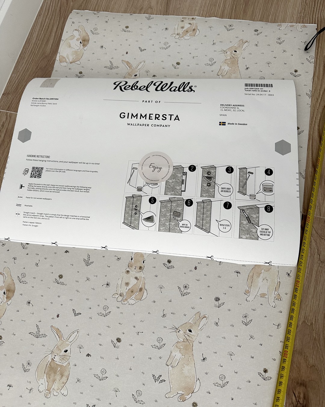Hoy en Empapelador Barcelona queremos compartir con vosotros un trabajo realizado la semana pasada: la instalación de un papel pintado infantil en Sabadell. Hemos utilizado un papel pintado de impresión digital de la prestigiosa marca Rebel Walls. Este tipo de papel, fabricado en Suecia y distribuido en España por la firma barcelonesa Coordonné, destaca por su calidad y diseño. En esta ocasión, se trata de un encantador papel infantil protagonizado por conejitos en tonos tierra, con un fondo gris adornado con pequeños motivos de plantas y flores. Sin duda, es una elección elegante y perfecta para decorar la habitación de un bebé.