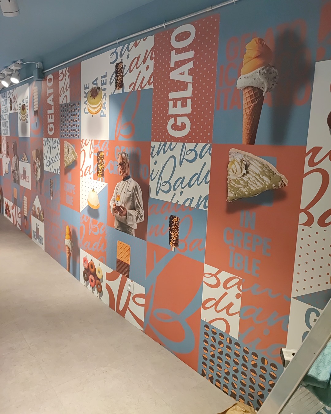 Mural de papel pintado y helados Badiani by Empapelador Barcelona